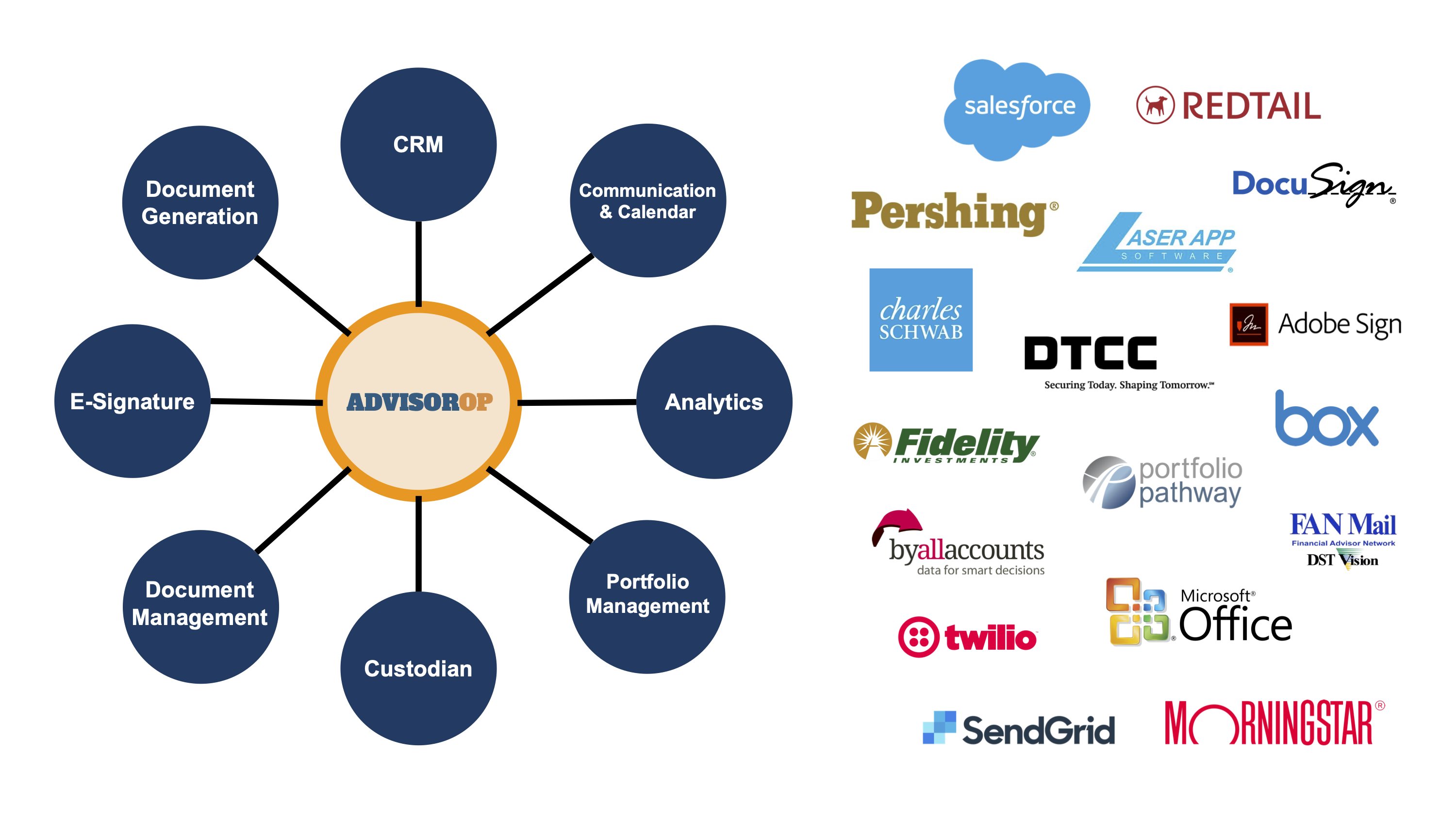 AdvisorOp is open-ended, built to connect to any vendor.
